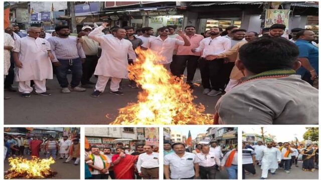 नेशनल हेराल्ड मामले में प्रवर्तन निदेशालय (ईडी) द्वारा कोर्ट में चार्जशीट दाखिल किए जाने के बाद भारतीय जनता पार्टी युवा मोर्चा ने कांग्रेस नेताओं के खिलाफ जोरदार प्रदर्शन किया। प्रदर्शन के दौरान सोनिया गांधी और राहुल गांधी का पुतला दहन किया गया।यह विरोध प्रदर्शन भाजयुमो के राष्ट्रीय नेतृत्व के आह्वान पर, प्रदेश युवा मोर्चा के निर्देश और एमसीबी जिला भाजपा अध्यक्ष श्रीमती चम्पा देवी पावले के मार्गदर्शन में आयोजित किया गया। प्रदर्शन के दौरान पुलिस और युवा मोर्चा कार्यकर्ताओं के बीच हल्की झड़प भी हुई, लेकिन प्रदर्शनकारी अपने उद्देश्य में सफल रहे।इस अवसर पर जिला भाजपा अध्यक्ष श्रीमती चम्पा देवी पावले ने कहा कि, “ईडी ने एक लंबी जांच प्रक्रिया के बाद कोर्ट में जो चार्जशीट दाखिल की है, उसमें सोनिया गांधी, राहुल गांधी, सेम पित्रोदा और सुमन दुबे जैसे नाम शामिल हैं। यह साफ है कि कांग्रेस पार्टी देश को गुमराह करने वाले षड्यंत्र में शामिल रही है। अब कांग्रेस धरना-प्रदर्शन के जरिए न्यायपालिका पर दबाव बनाने की कोशिश कर रही है। लेकिन न्यायपालिका सर्वोच्च है, और जो भी दोषी होगा उसे सजा जरूर मिलेगी।”प्रदर्शन में बड़ी संख्या में भाजपा और युवा मोर्चा के पदाधिकारी व कार्यकर्ता उपस्थित रहे, जिनमें प्रमुख रूप से:नगर पालिका अध्यक्ष श्रीमती प्रतिमा यादव,नपा उपाध्यक्ष धर्मेंद्र पटवा,लखन लाल श्रीवास्तव,सरजू यादव,रामचरित द्विवेदी,प्रतिमा पटवा, भाजयुमो जिलाध्यक्ष सुशील सिंह,हिमांशु श्रीवास्तव,संजय सिंह,दिनेश्वर मिश्रा,सुरेश श्रीवास्तव,सुरेश सोनी,अधिवक्ता आशीष सिंह,अधि. आशीष मजूमदार,