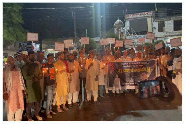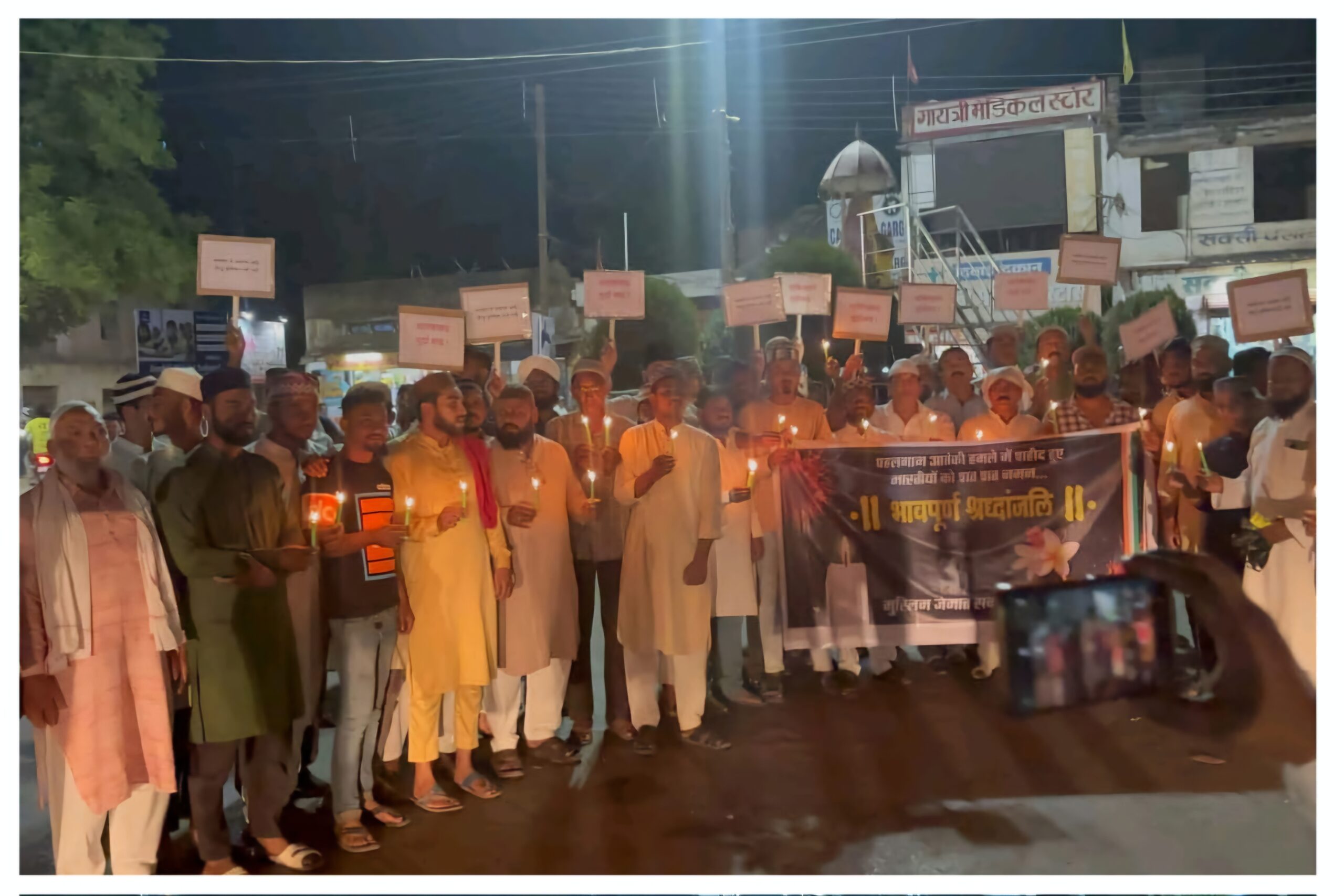 - आतंकवादी मुर्दाबाद” के नारे के साथ आयोजित की कैंडल मार्च