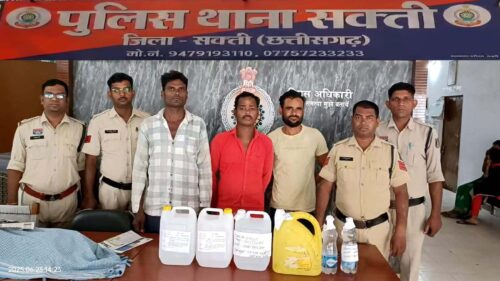 पुलिस अधीक्षक अंकिता शर्मा द्वारा अवैध जुआ/सट्टा तथा नशे के कारोबारियों के विरूद्ध अभियान चलाकर कार्यवाही करने के दिये गये दिशा निर्देशों के परिपालन में अतिरिक्त पुलिस अधीक्षक हरिश यादव एवं अनुविभागीय अधिकारी (पु) सक्ती मनीष कुंवर के मार्गदर्शन पर 22 जून को थाना प्रभारी सक्ती उप निरी0 अनवर अली के नेतृत्व में अभियान चलाकर आबकारी एक्ट के तहत कार्यवाही की गई। मुखबीर से सूचना मिला कि अखराभांठा निवासी प्रकाश केवट तथा वार्ड क्र 01 सतनामी पारा निवासी पप्पू पंकज व 01 अज्ञात व्यक्ति तथा सोंठी निवासी गनेश राम सतनामी अपने-अपने कब्जे में अवैध रूप से बिक्री हेतु भारी मात्रा में कच्ची महुआ शराब रखे है कि सूचना पर हमराह स्टाप एवं गवाहान के मुखबिर के बताये स्थानों पर अलग-अलग टीम बनाकर रेड कार्यवाही किया गया जो आरोपी-प्रकाश केवट पिता कोंदाराम केवट साकिन अखराभांठा के कब्जे से 06 लीटर कच्ची महुआ शराब, आरोपी- पप्पू पंकज पिता लक्ष्मीण पंकज उम्र 34 वर्ष निवासी सतनामी पारा सक्ती के कब्जे से 06 लीटर कच्ची महुआ शराब, आरोपी गनेश राम सतनामी पिता स्व. मोहन लाल सतनामी उम्र 40 वर्ष सा0 ग्राम सोंठी के कब्जे से 10 लीटर कच्ची महुआ शराब तथा सतनामी पारा निवासी फरार आरोपी के बाड़ी से 08 लीटर, कुल 30 लीटर कच्ची महुआ शराब जप्त किया गया। आरोपीगणों का उपरोक्त कृत्य धारा 34(2) आबकारी एक्ट का घटित करना पाये जाने से मौके पर 03 आरोपीगण को गिर0 कर माननीय न्यायालय में न्यायिक रिमांड पर पेश किया गया है तथा 01 आरोपी मौके से फरार है जिसकी शीध्र पता तलाश कर गिरफतार करने की बात कही।
