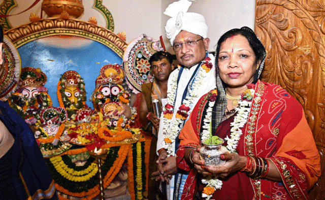 रायपुर। जशपुर ज़िले के ऐतिहासिक एवं प्राचीन श्री जगन्नाथ मंदिर दोकड़ा में इस वर्ष भी रथयात्रा महोत्सव का आयोजन परंपरागत श्रद्धा, भक्ति और भव्यता के साथ किया गया। मंदिर से रथ यात्रा के रवाना होने से पहले मुख्यमंत्री श्री विष्णुदेव साय एवं उनकी धर्मपत्नी श्रीमती कौशल्या देवी साय ने जगन्नाथ मंदिर में पूरे विधि-विधान से भगवान श्री जगन्नाथ, भाई बलभद्र एवं बहन सुभद्रा की पूजा-अर्चना कर प्रदेशवासियों के सुख, समृद्धि और कल्याण की मंगलकामना की। मुख्यमंत्री श्री विष्णुदेव साय ने झाडू से रथयात्रा के मार्ग को बुहारकर छेरा-पहरा की रस्म निभाई।