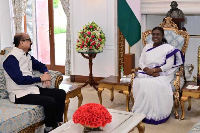 Home छत्तीसगढ़ रायपुर : राष्ट्रपति श्रीमती मुर्मु से राज्यपाल श्री डेका ने की सौजन्य... छत्तीसगढ़ रायपुर : राष्ट्रपति श्रीमती मुर्मु से राज्यपाल श्री डेका ने की सौजन्य भेंट By News Desk - July 8, 2025 31 0 FacebookTwitterPinterestWhatsApp Spread the loveरायपुर राज्यपाल श्री रमेन डेका ने आज नई दिल्ली राष्ट्रपति भवन में राष्ट्रपति श्रीमती द्रौपदी मुर्मु से सौजन्य भेंट की।