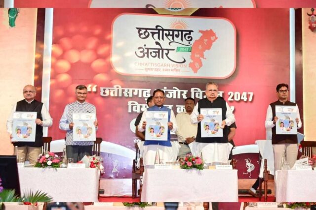 छत्तीसगढ़ की विकास यात्रा में आज का दिन ऐतिहासिक बन गया, जब मुख्यमंत्री विष्णु देव साय ने “छत्तीसगढ़ अंजोर विज़न@2047” दस्तावेज को प्रदेश की जनता को समर्पित किया। नवा रायपुर अटल नगर में आयोजित भव्य कार्यक्रम में राज्य मंत्रिमंडल के सदस्यगण, नीति आयोग भारत सरकार, विषय विशेषज्ञ, जनप्रतिनिधि और वरिष्ठ अधिकारी उपस्थित रहे। इस अवसर पर मुख्यमंत्री ने कहा कि यह दस्तावेज केवल शब्दों का संकलन नहीं, बल्कि आत्मनिर्भर, समृद्ध और विकसित छत्तीसगढ़ के निर्माण का एक ठोस संकल्प और स्पष्ट दिशा है। उन्होंने कहा कि यह विज़न प्रधानमंत्री नरेंद्र मोदी जी के विकसित भारत@2047 के संकल्प से प्रेरित है और छत्तीसगढ़ को भारत के अग्रणी एवं विकसित राज्य में शामिल करने के लिए मार्गदर्शन प्रदान करेगा।