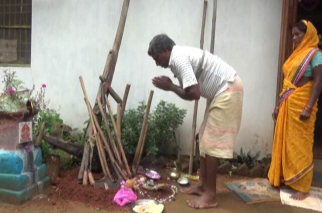 परंपरा के अनुसार वर्षों से छत्तीसगढ़ के गांव में अक्सर हरेली तिहार के पहले बढ़ई के घर में गेड़ी का ऑर्डर रहता था और बच्चों की जिद पर अभिभावक जैसे-तैसे गेड़ी भी बनाया करते थे। हरेली तिहार के दिन सुबह से तालाब के पनघट में किसान परिवार, बड़े बजुर्ग बच्चे सभी अपने गाय, बैल, बछड़े को नहलाते हैं और खेती-किसानी, औजार, हल (नांगर), कुदाली, फावड़ा, गैंती को साफ कर घर के आंगन में मुरूम बिछाकर पूजा के लिए सजाते हैं। माताएं गुड़ का चीला बनाती हैं। कृषि औजारों को धूप-दीप से पूजा के बाद नारियल, गुड़ के चीला का भोग लगाया जाता है। अपने-अपने घरों में अराध्य देवी-देवताओं की साथ पूजा करते हैं। गांवों के ठाकुरदेव की पूजा की जाती है।