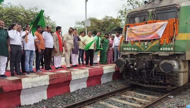 रायपुर: मुख्यमंत्री श्री विष्णु देव साय की महत्वाकांक्षी योजना श्री रामलला दर्शन योजना के तहत सरगुजा संभाग से सातवीं यात्रा पर 850 श्रद्धालुओं का जत्था बुधवार को अंबिकापुर रेलवे स्टेशन से अयोध्या धाम के लिए रवाना हुआ। दोपहर 2 बजे विशेष ट्रेन को अंबिकापुर विधायक श्री राजेश अग्रवाल ने हरी झंडी दिखाकर रवाना किया। उन्होंने सभी श्रद्धालुओं को मंगलमय एवं सुखद यात्रा की शुभकामनाएं दीं। इस अवसर पर जिला पंचायत अध्यक्ष श्रीमती निरुपा सिंह, नगर निगम की महापौर श्रीमती मंजूषा भगत, सभापति श्री हरमिन्दर सिंह टिन्नी, जिला प्रशासन के अधिकारीगण और अन्य जनप्रतिनिधि भी उपस्थित रहे।