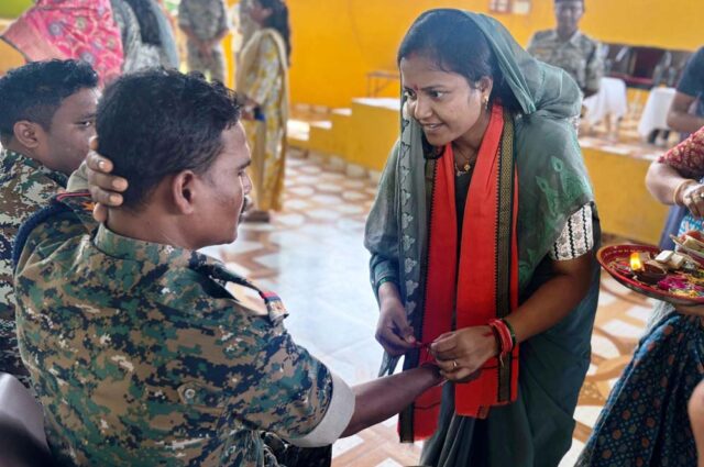 महिला एवं बाल विकास मंत्री श्रीमती लक्ष्मी राजवाड़े ने दंतेवाड़ा प्रवास के दौरान सुरक्षा कैम्प कारली पहुंचकर जवानों से मुलाकात की। उन्होंने जवानों को राखी बांधी और उन्हें रक्षा पर्व की अग्रिम बधाई और शुभकामनाएं दीं। इस अवसर पर उन्होंने जवानों के प्रति अपना आभार और सम्मान व्यक्त करते हुए कहा कि आप सभी देश के प्रहरी हैं। यह राखी केवल एक रक्षासूत्र नहीं, बल्कि आपके प्रति हमारे विश्वास, कृतज्ञता और सम्मान का प्रतीक है। आपकी वीरता और अनुशासन, पूरे समाज के लिए प्रेरणा है। हम अपने घरों में सुरक्षित हैं, यह आपकी कर्तव्य परायणता की बदौलत है। आपकी इस सेवा को हम हृदय से सम्मान करते हैं।
