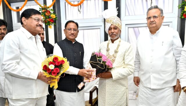 रायपुर 18 अक्टूबर 2025/ मुख्यमंत्री श्री विष्णुदेव साय कौशल विकास, तकनीकी शिक्षा एवं रोजगार मंत्री गुरु खुशवंत साहेब के नवा रायपुर स्थित नवीन शासकीय आवास के गृहप्रवेश कार्यक्रम में शामिल हुए। मुख्यमंत्री श्री साय के धर्मगुरु गुरु बालदास साहेब जी को उनके जन्मदिन की बधाई एवं शुभकामनाएं देते हुए उन्हें शॉल व पुष्पगुच्छ भेंट किया।