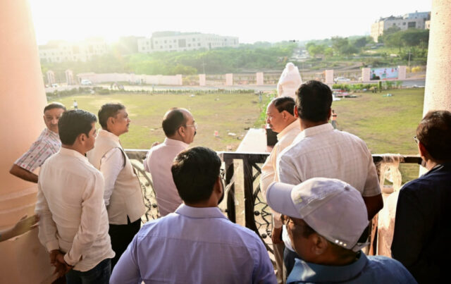 उप मुख्यमंत्री श्री साव ने नवीन विधानसभा परिसर में पूर्व प्रधानमंत्री स्वर्गीय श्री अटल बिहारी बाजपेयी की मूर्ति के अनावरण स्थल, विधानसभा के सदन और मंचीय कार्यक्रम के स्थल का जायजा लेकर अधिकारियों को आवश्यक निर्देश दिए। नवा रायपुर के सेक्टर-19 में मंत्रालय (महानदी भवन) और विभागाध्यक्ष कार्यालय (इंद्रावती भवन) के पीछे 51 एकड़ परिसर में विधानसभा का नया भवन बनाया गया है।