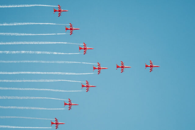 1996 में गठित सूर्यकिरण एरोबैटिक टीम भारतीय वायुसेना की सटीकता और सामूहिक समन्वय की अनूठी मिसाल है। एशिया की यह एकमात्र नौ विमान वाली एरोबैटिक डिस्प्ले टीम है, जिसके विमानों के बीच की दूरी मात्र पाँच मीटर तक होती है। यह भारत की तकनीकी दक्षता, अनुशासन और साहस का अद्भुत उदाहरण है।