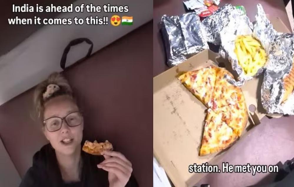 24 वर्षीय ऑस्ट्रेलियाई महिला बेक मैककॉल भारत की ट्रेन यात्रा के दौरान पिज़्ज़ा और फ्रेंच फ्राइज़ की डिलीवरी पाकर हैरान रह गईं. उन्होंने इस अनोखे अनुभव का वीडियो सोशल मीडिया पर साझा किया, जो तेजी से वायरल हो गया. लोगों ने भारत की तेज और तकनीकी रूप से उन्नत सेवाओं की तारीफ की, वहीं कुछ यूज़र्स ने इस पर सामाजिक और आर्थिक पहलुओं पर भी चर्चा की.