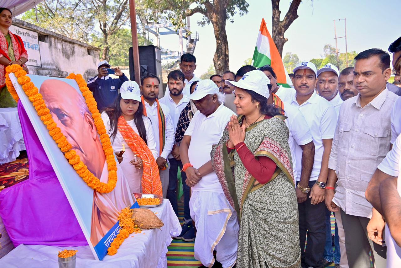 रायपुर: अखंड भारत के शिल्पकार लौह पुरुष सरदार वल्लभभाई पटेल की 150वीं जयंती के अवसर पर सूरजपुर में आज भव्य “यूनिटी मार्च” का आयोजन किया गया।जिसमें महिला एवं बाल विकास मंत्री श्रीमती लक्ष्मी राजवाड़े ने सम्मिलित होकर लोगों का उत्साह बढ़ाया। मंत्री श्रीमती राजवाड़े ने कहा कि छत्तीसगढ़ राज्य अपना रजत जयंती वर्ष मना रहा है और इसी दौरान सरदार वल्लभभाई पटेल की 150वीं जयंती मनाना राष्ट्र के प्रति गर्व और कृतज्ञता का अवसर है। उन्होंने कहा कि सरदार पटेल ने 565 रियासतों का एकीकरण कर अखंड भारत की नींव रखी।सरदार पटेल का जीवन राष्ट्रनिष्ठा का सर्वाेत्तम उदाहरण है। त्याग, सेवा और राष्ट्रहित को सर्वाेपरि रखने की उनकी सोच सदैव प्रेरणा देती रहेगी।