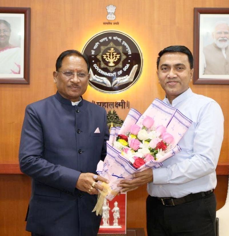 Home छत्तीसगढ़ मुख्यमंत्री विष्णुदेव साय ने गोवा के मुख्यमंत्री डॉ. प्रमोद सावंत से की... छत्तीसगढ़ मुख्यमंत्री विष्णुदेव साय ने गोवा के मुख्यमंत्री डॉ. प्रमोद सावंत से की सौजन्य भेंट…. By News Desk - January 9, 2026 19 0 FacebookTwitterPinterestWhatsApp Spread the loveरायपुर: मुख्यमंत्री श्री विष्णुदेव साय ने आज गोवा प्रवास के दौरान गोवा के मुख्यमंत्री डॉ. प्रमोद सावंत से सौजन्य मुलाकात की। इस अवसर पर दोनों मुख्यमंत्रियों के बीच आपसी सहयोग और साझा हितों से जुड़े विषयों पर आत्मीय चर्चा हुई।