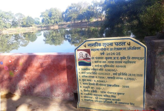 रायपुर: मुख्यमंत्री श्री विष्णु देव साय के सुशासन और सहभागी विकास की अवधारणा से राज्य सरकार की जल संरक्षण-संवर्धन नीति और मनरेगा जैसी जनकल्याणकारी योजनाओं के प्रभावी क्रियान्वयन से गाँव-गाँव में जल स्रोतों का पुनर्जीवन हो रहा है। इसी दूरदर्शी सोच का सशक्त उदाहरण रायगढ़ जिला अंतर्गत जनपद पंचायत पुसौर के ग्राम पंचायत बुनगा में देखने को मिला है, जहाँ मनरेगा योजना के तहत गतवा तालाब का गहरीकरण एवं जीर्णाेद्धार कार्य सफलतापूर्वक पूर्ण किया गया। यह कार्य न केवल जल संकट के समाधान की दिशा में एक बड़ा कदम है, बल्कि ग्रामीण आजीविका, कृषि और आर्थिक सशक्तिकरण की दिशा में भी मील का पत्थर साबित हो रहा है।