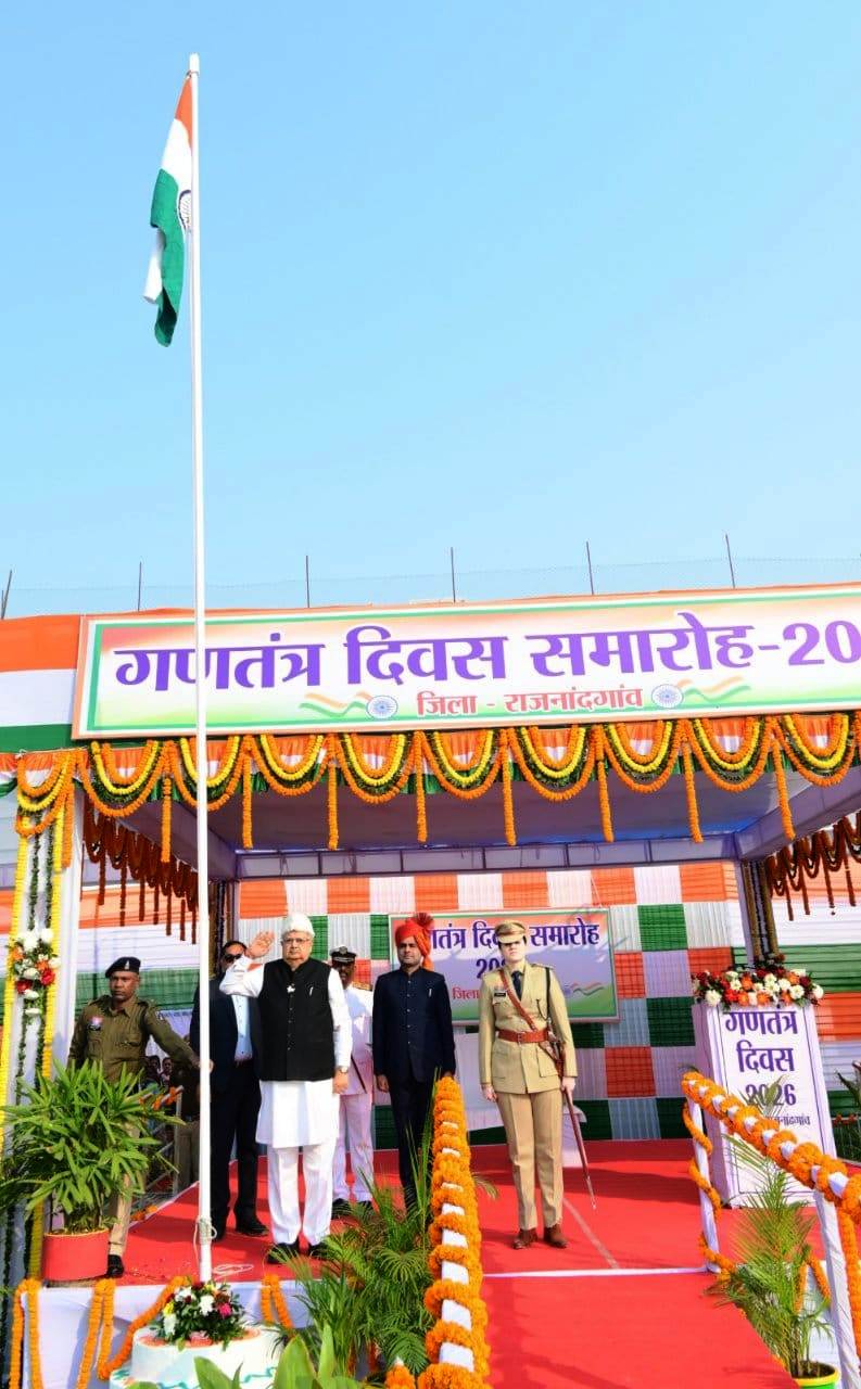 रायपुर: राजनांदगांव जिले में 77वां गणतंत्र दिवस अपूर्व उत्साह और हर्षाेल्लास के साथ मनाया गया। जिला स्तरीय मुख्य समारोह दिग्विजय स्टेडियम में आयोजित हुआ, जहां मुख्य अतिथि विधानसभा अध्यक्ष डॉ. रमन सिंह ने राष्ट्रीय ध्वज फहराकर संयुक्त परेड की सलामी ली। उन्होंने गणतंत्र दिवस पर सभी नागरिकों को शुभकामनाएं दीं। इसके बाद मुख्यमंत्री श्री विष्णुदेव साय का जनता के नाम संदेश वाचन किया गया।