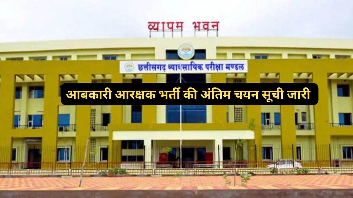 अधिकारियों ने बताया कि आबकारी आरक्षक पद हेतु छत्तीसगढ़ व्यापम द्वारा आयोजित भर्ती परीक्षा में व्यापम द्वारा जारी मेरिट सूची के आधार पर विभाग में दस्तावेज सत्यापन एवं शारीरिक मापदण्ड में पात्र पाये गये अभ्यर्थियों में से चयन हेतु उपयुक्त पाये गये अभ्यर्थियों की सूची मंडल की वेबसाईट पर अपलोड कर दी गई है।