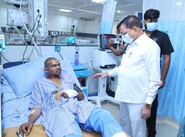 उन्होंने अस्पतालों में उपलब्ध चिकित्सा सुविधाओं, आईसीयू व्यवस्था, विशेषज्ञ चिकित्सकों की तैनाती एवं मरीजों की देखभाल की स्थिति का जायजा लिया। उन्होंने कलेक्टर एवं मुख्य चिकित्सा एवं स्वास्थ्य अधिकारी तथा चिकित्सकों की टीम से उपचार संबंधी व्यवस्थाओं की विस्तृत जानकारी प्राप्त कर निर्देशित किया कि सभी घायलों को बेहतर चिकित्सा सुविधा उपलब्ध कराई जाए। इस दौरान उन्होंने ग्रामीणों से बातचीत कर उनकी स्थिति की जानकारी भी ली।